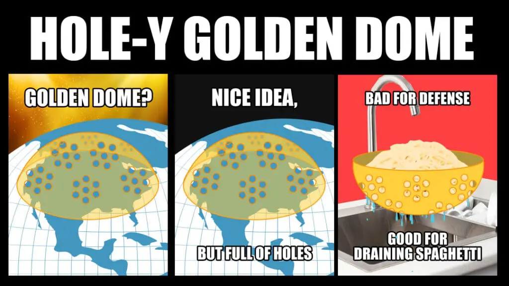 Any physics expert not on the dome payroll will tell you that the Golden Dome Invisible Shield will never work. But the Hole-In Dome Colander Company found a way to turn it into reality.